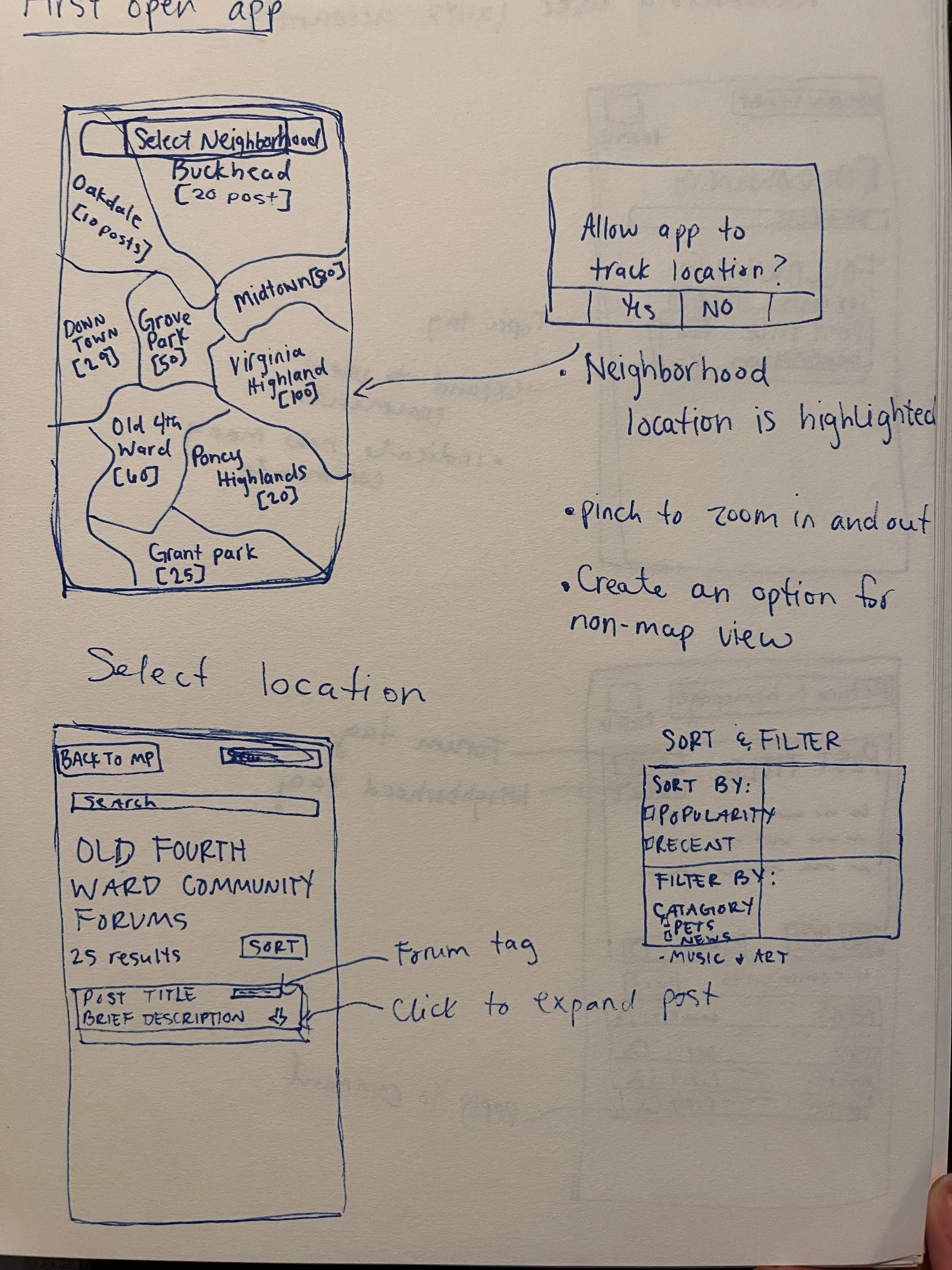 Neighbors is a forum-community mobile application based on location. My client wanted users to be able to move around on a map and see posts in specific areas as opposed to one general search area.